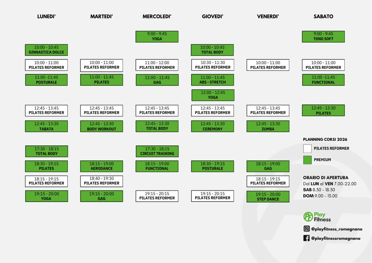 Oltre 30 corsi fitness ogni settimana, tutti a tempo di musica e guidati da trainer certificati.